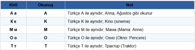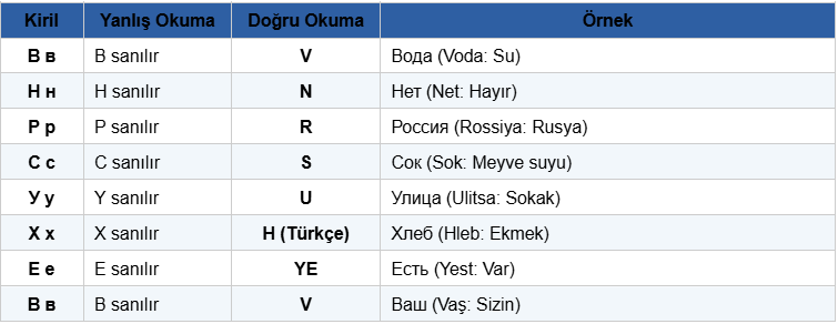 Türk öğrenciler için Kiril alfabesi ilk bakışta karmaşık görünse de harflerin yaklaşık üçte biri Türk alfabesindeki harflere benzer ya da aynıdır. Asıl dikkat edilmesi gereken nokta, tanıdık görünüp farklı okunan tuzak harflerdir. Düzenli özel ders alan öğrenciler bu tuzakları ilk günden tespit ederek doğru temeli kurar; kendi başına çalışanlar ise aynı hatayı haftalarca tekrar edebilir.